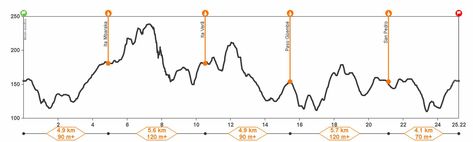 - Distancia total: 25,2 kilómetros.