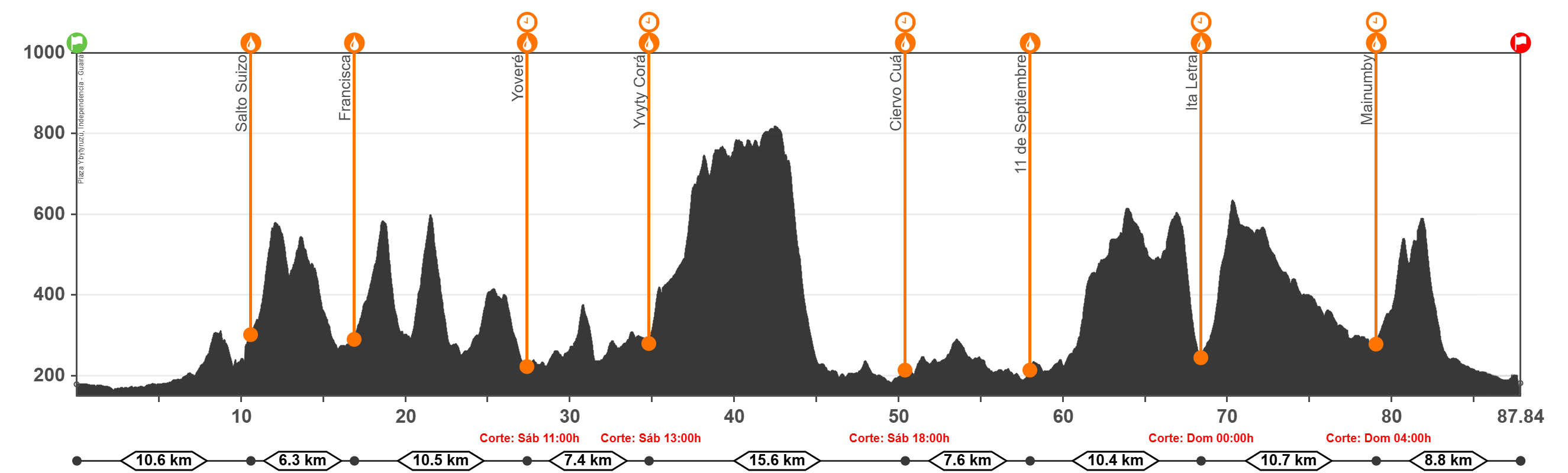 | Llegada | Plaza Ybytyruzú, Melgarejo, Independencia - - Corte: Dom. 07:00 hs. | 180 | 87,8 | 5.128 | 5.128 | 8,7 | 443 | 544 |