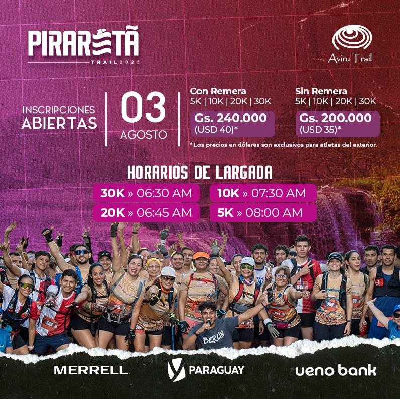 Se realizará el día domingo 3 de agosto de 2025, el lugar de salida será el Complejo Turístico Pinamar, en la ciudad de Piribebuy, departamento de Cordillera. Los horarios de largada se establecen de acuerdo al desafío escogido por el corredor: